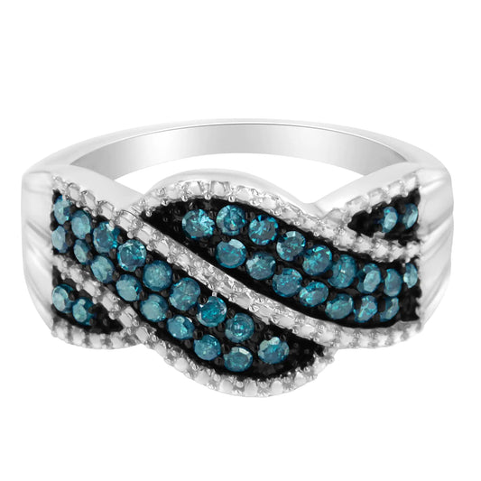 Rhodium over .925 Sterling Silver 1-1/2 Cttw Blue Diamond Pavé Ring, 18" Pendant Necklace, & Earrings Set (Enhanced Color, I1-I2 Clarity)