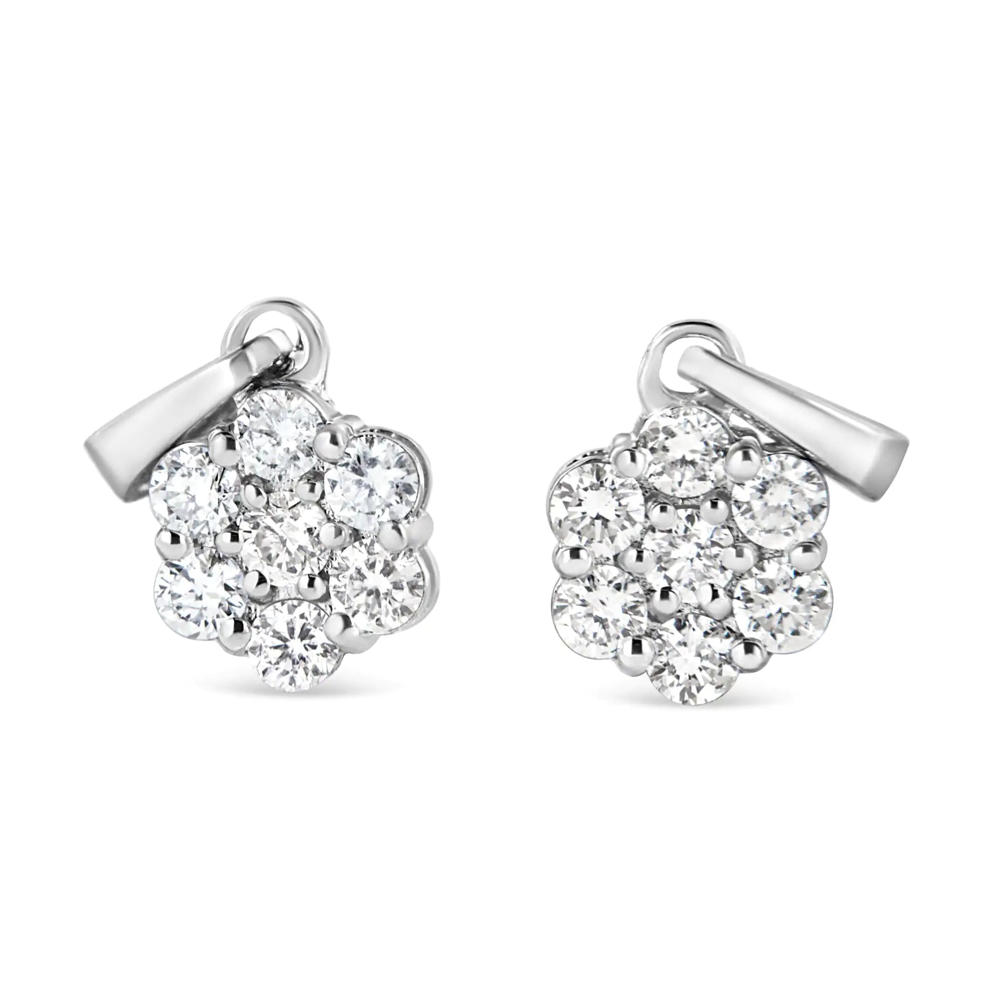14KT White Gold 1/2 cttw Diamond Floral Cluster Pendant Necklace (HI, SI2-I1)